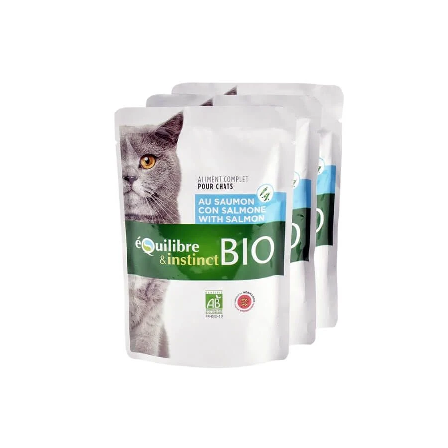 Pourquoi choisir les émincés BIO au saumon pour chat Equilibre & Instinct ?