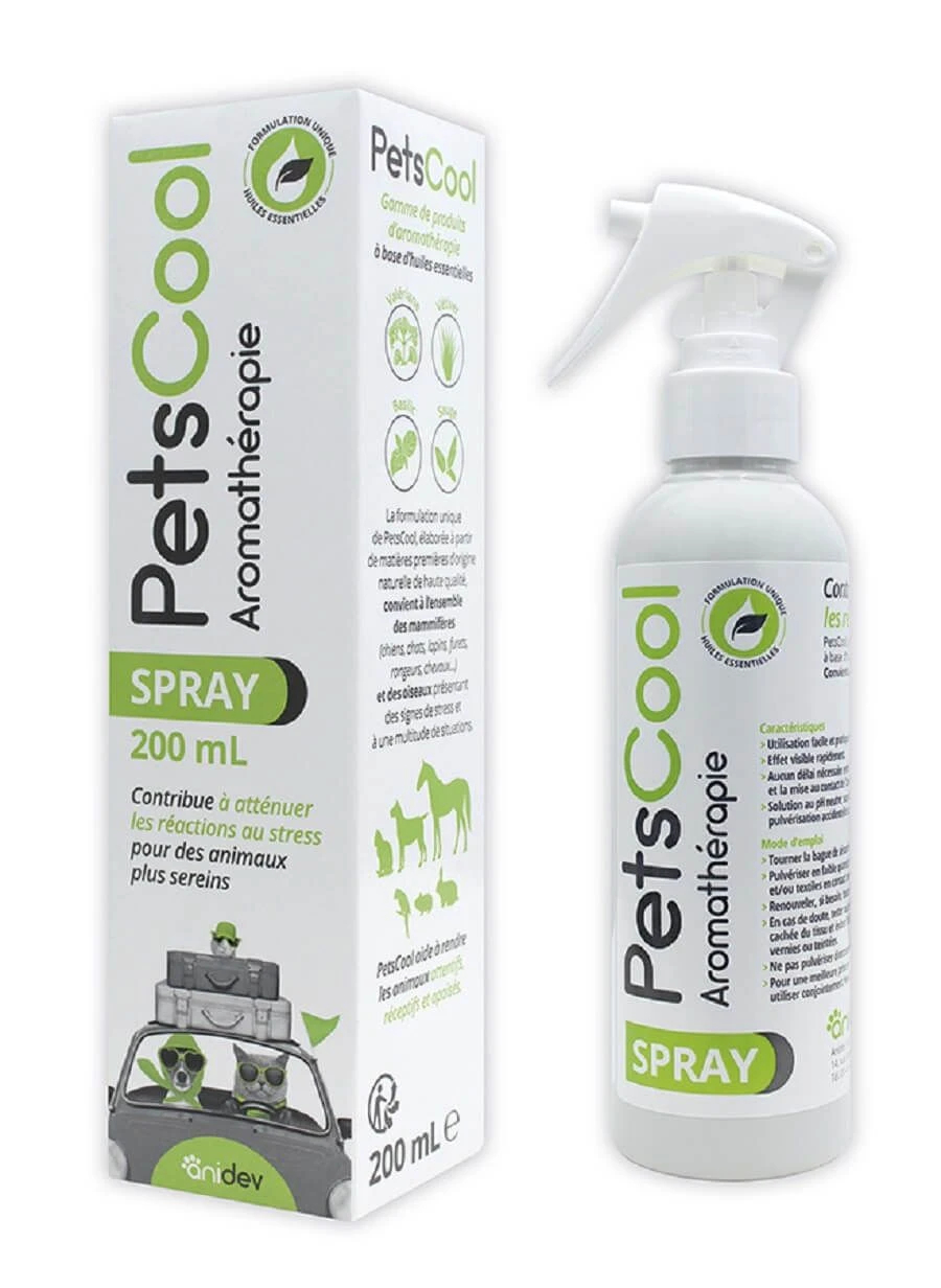 PetsCool est un mélange d’huiles essentielles de valériane, de vétiver, de sauge et de basilic qui va permettre d’atténuer les situations de stress chez les mamifères. C’est un produit d’aromathérapie par inhalation pour animaux. Grâce à son mode d’action non spécifique, PetsCool® n’est pas spécifique à une espèce : PetsCool® convient à l’ensemble des mammifères (chiens, chats, rongeurs, lapins, chevaux…) et aux oiseaux. PetsCool permet à tous les animaux de vivre plus sereinement ensemble.