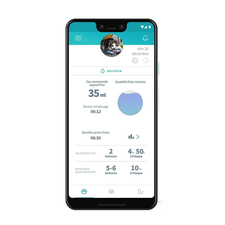 Cet objet connecté est une belle innovation qui permettra en plus de fournir une bonne hydratation à votre animal, d’analyser son comportement en vous fournissant des informations directement consultable sur l’application gratuite « Sure Petcare ». Vous pourrez ainsi détecter plus rapidement d’éventuels problèmes rénaux ou urinaires si la consommation d’eau de votre chat change.